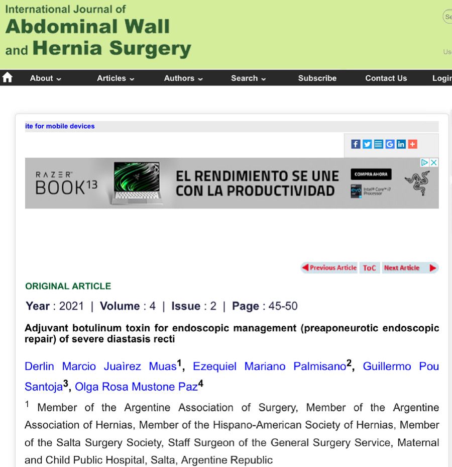 Nueva publicación internacional en la que ha participado el equipo de cirujanos de nuestra Clínica de Hernia Especializada, el Dr. Guillermo Pou y la Dra. Olga Mustone.